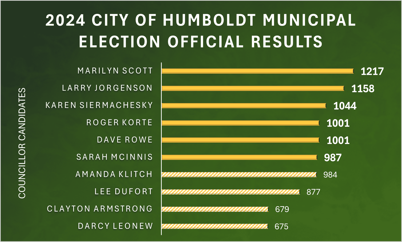 The Official Candidate Nomination List for the 2024 City of Humboldt Municipal Election are as follows: