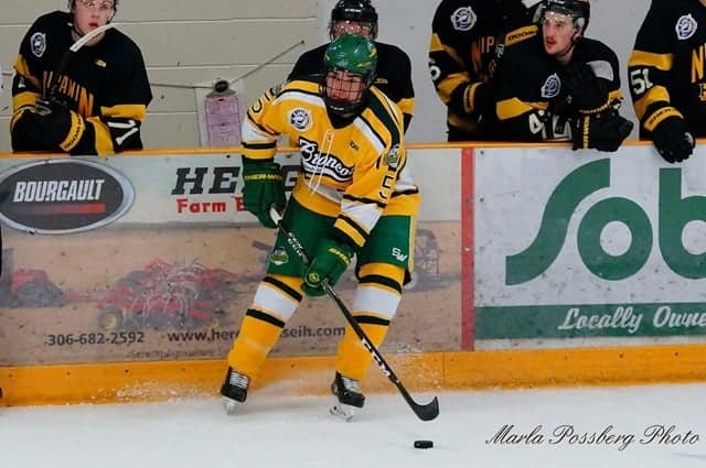 Adam was called up to play with the Broncos after the Pat Canadians were eliminated from the playoffs. During his short time in Humboldt, Adam also drove back and forth to Prince Albert to practise with his WHL team, the Prince Albert Raiders.