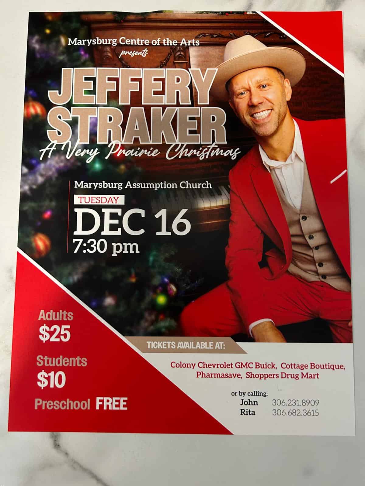Tickets available in Humboldt at Colony Chevrolet GMC Buick, Cottage Boutique, Pharmasave, Shoppers Drug Mart or by phoning John at 306-231-8909 or Rita at 306-682-3615