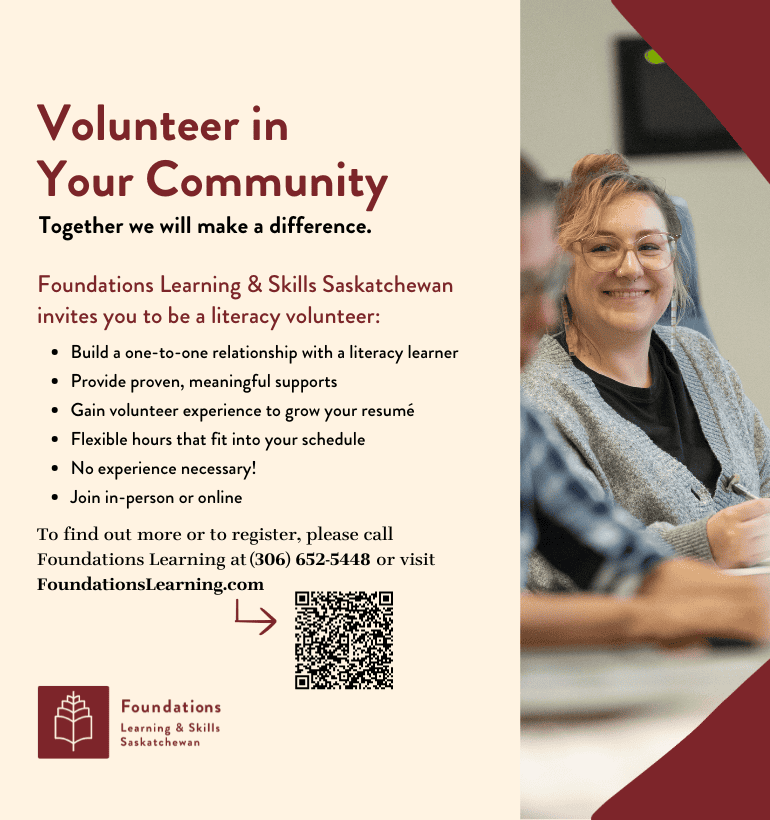 Foundations Learning & Skills Saskatchewan’s orientation introduces the community and prospective volunteers to Foundations Learning, literacy facts, and literacy challenges facing our city, province, and country.