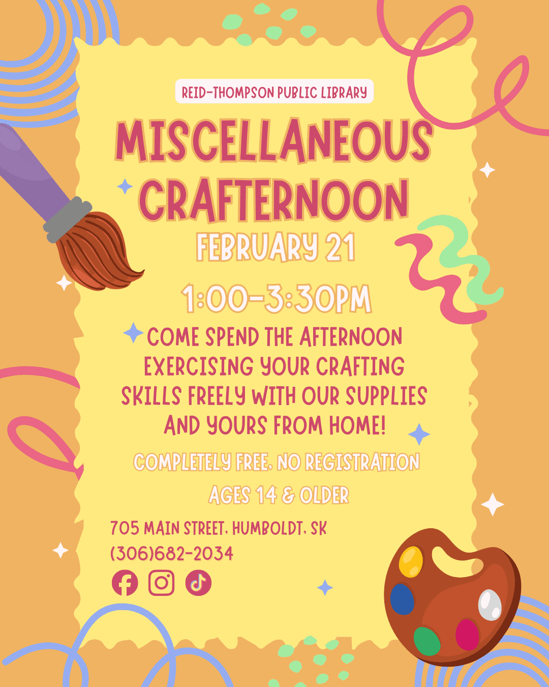 Spend the afternoon exercising your crafting skills with library supplies and yours from home. Ages 14 and older.