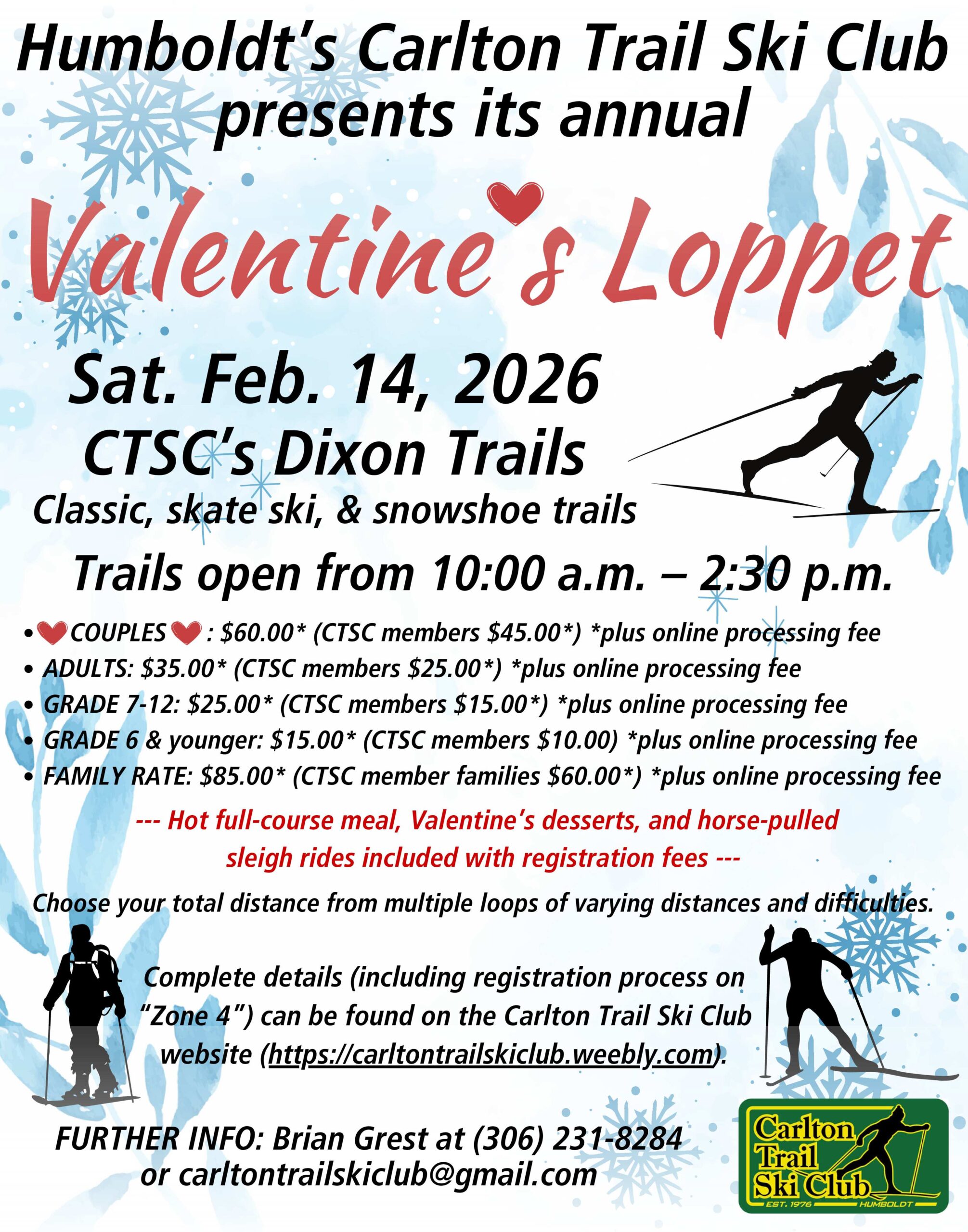 Humboldt’s Carlton Trail Ski Club presents its annual Valentine s Loppet. CTSC’s Dixon Trails Classic, skate ski, & snowshoe trails Trails open.