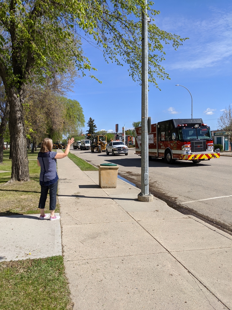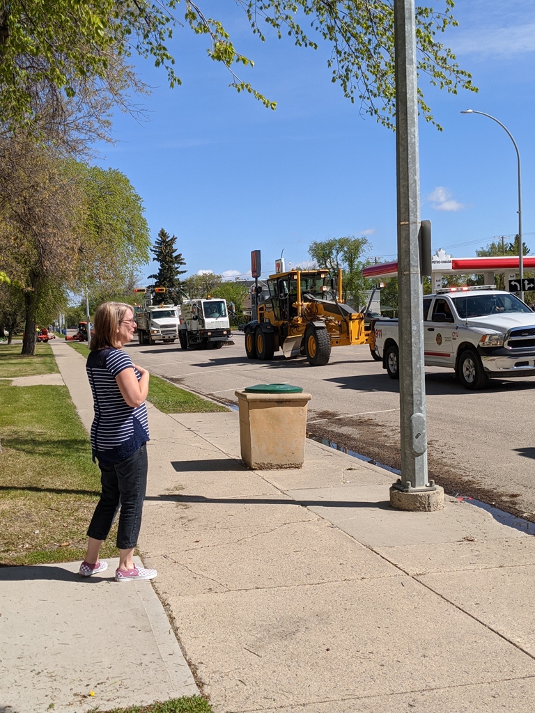 In recognition of Sandra Pauli’s last day with the City of Humboldt before her retirement, City Employees from all departments paraded down main street this morning in front of City Hall in salute of her 35 of years of dedicated service. (See below for a video and still photos.)